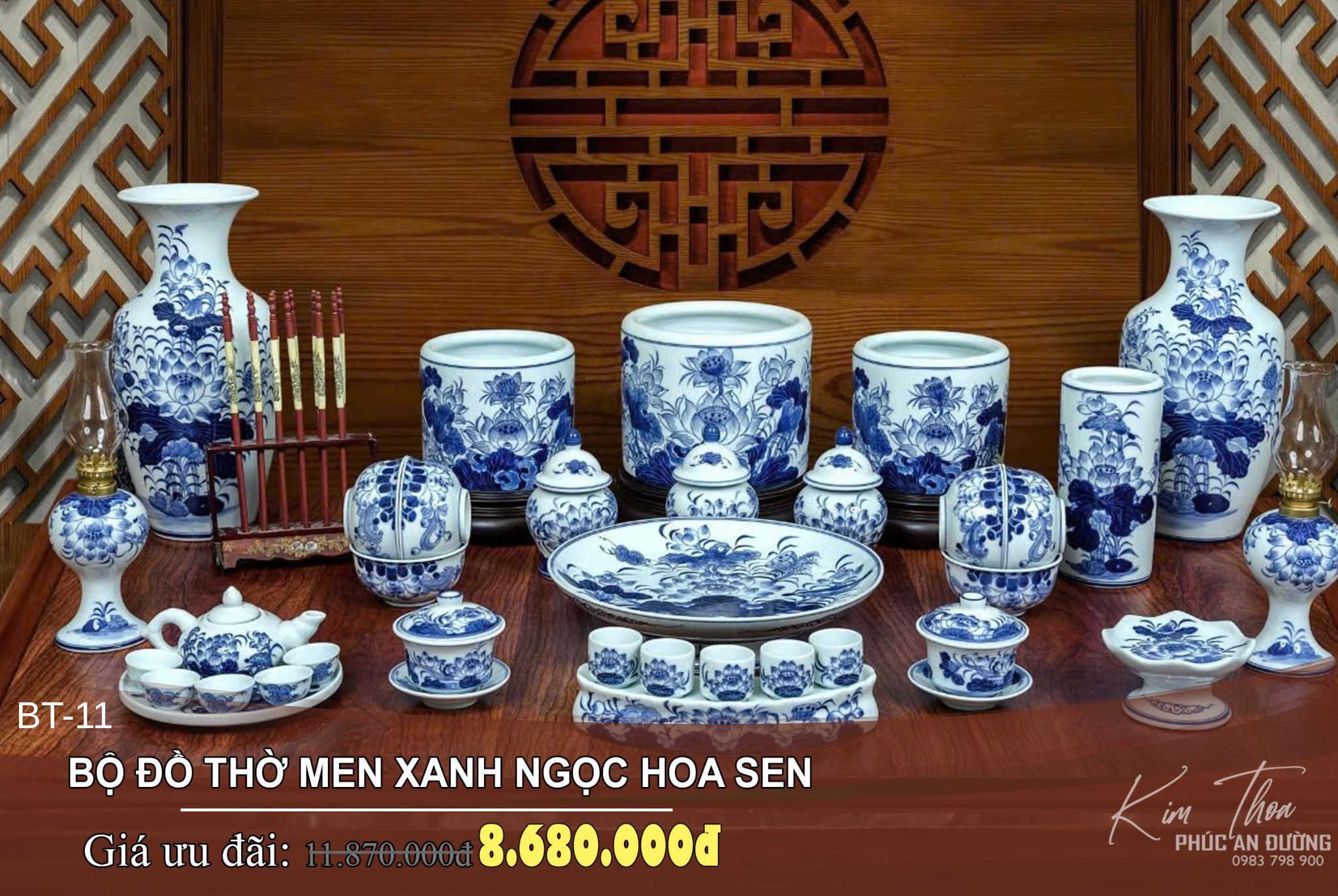 => Bộ đồ thờ men xanh ngọc hoa sen BT-11 là lựa chọn phù hợp cho những gia đình cần một bộ đồ thờ trang nhã, gọn gàng và giữ trọn nét thanh tịnh trong không gian thờ.