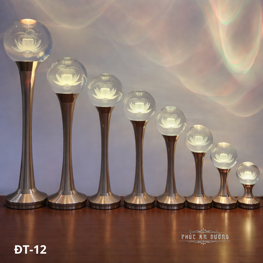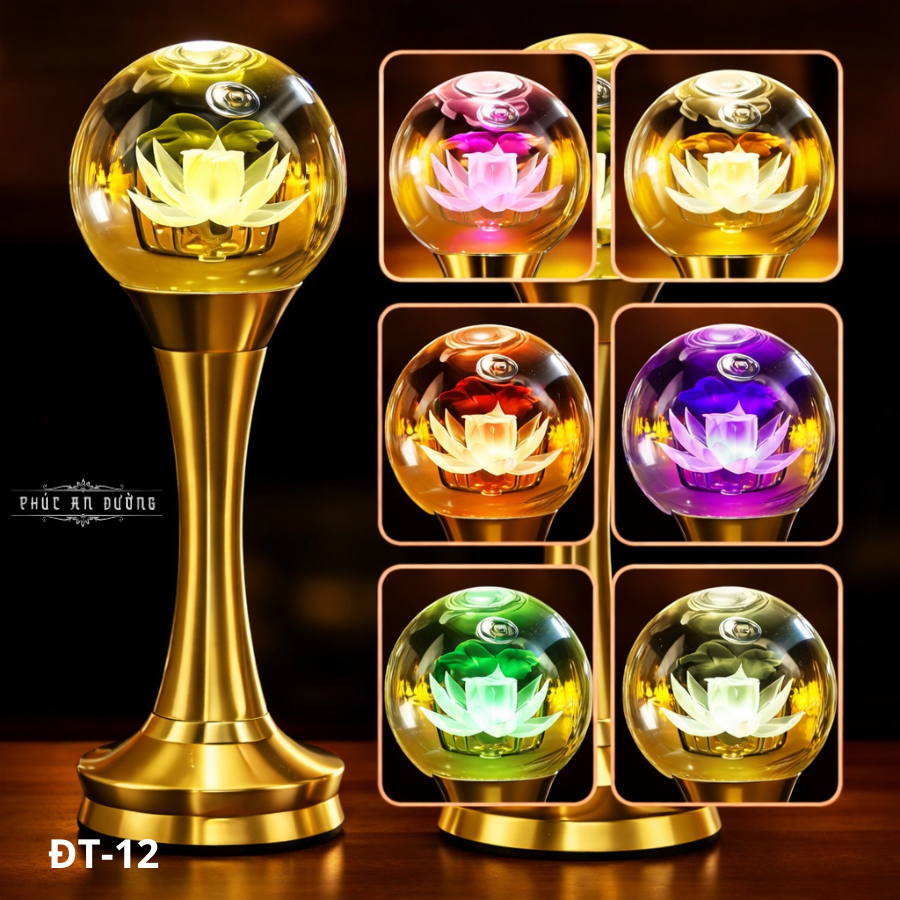 Đèn cầu pha lê hoa sen là mẫu đèn thờ mang giá trị thẩm mỹ cao và ý nghĩa tâm linh sâu sắc. Thiết kế dạng quả cầu pha lê trong suốt, bên trong là hoa sen phát sáng, biểu trưng cho sự thanh tịnh, giác ngộ và an lạc trong không gian thờ cúng.