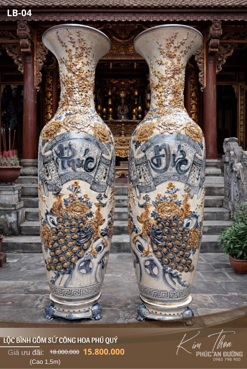 Đặt mua Lộc Bình Gốm Sứ Công Hoa Phú Quý LB-04 – Đắp Nổi Tinh Xảo