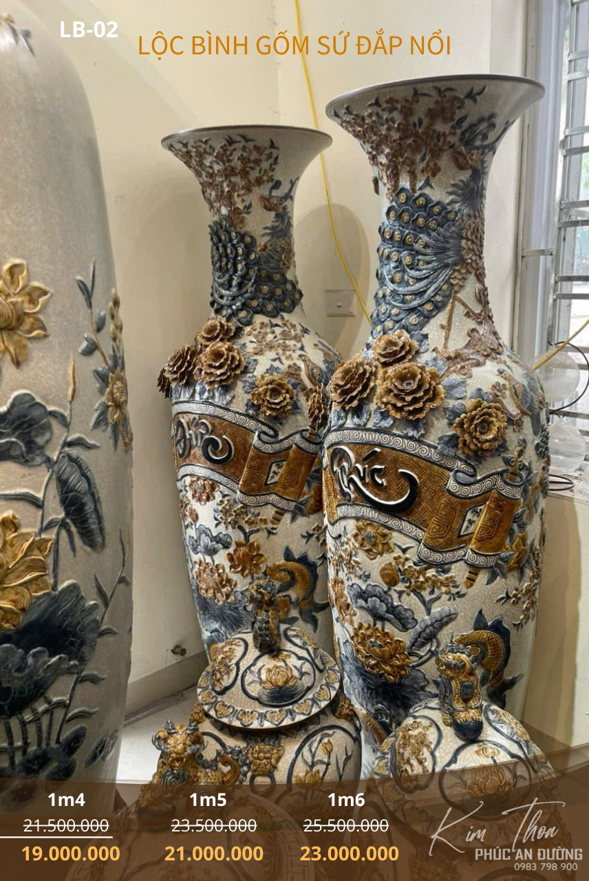 Đặt mua Lộc Bình Gốm Sứ Đắp Nổi LB-02 – Vẻ Đẹp Phú Quý Cho Không Gian Trang Nghiêm