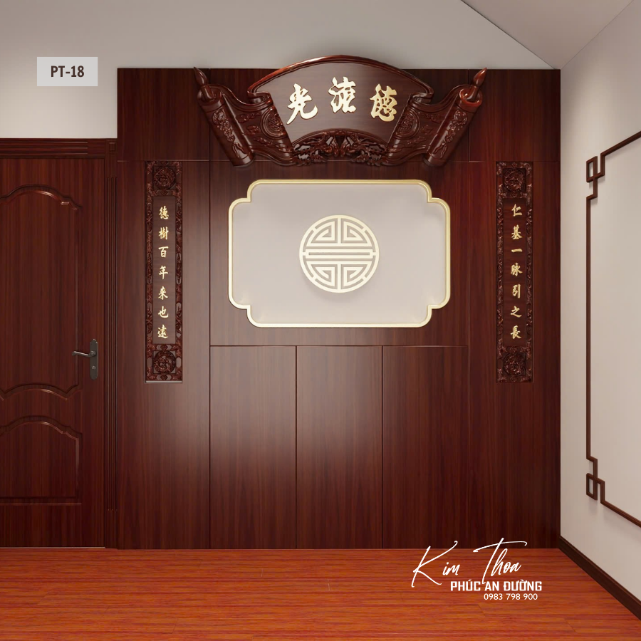 Phòng thờ PT-18 được Phúc An Đường thiết kế dành cho những gia đình yêu thích không gian thờ truyền thống nhưng cần sự gọn gàng, tinh tế và dễ ứng dụng trong nhà phố hoặc chung cư.